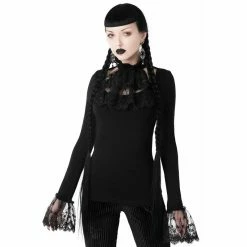 Von den sieben Todsünden, macht mir nur Neid keinen Spaß. Lass sie alle mit Neid erblassen. Killstars Fiona Top ist das perfekte Basic mit extravaganten Details. Ein gerüschtes Jabot, Choker Ausschnitt und Manschetten aus Spitze.