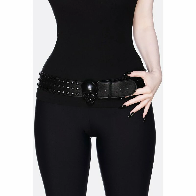 Schwarz ist meine Schutzfarbe. Killstars Bad Bones Gürtel ist mit kleinen schwatrzen Spikes und einem großen Schädel besetzt.