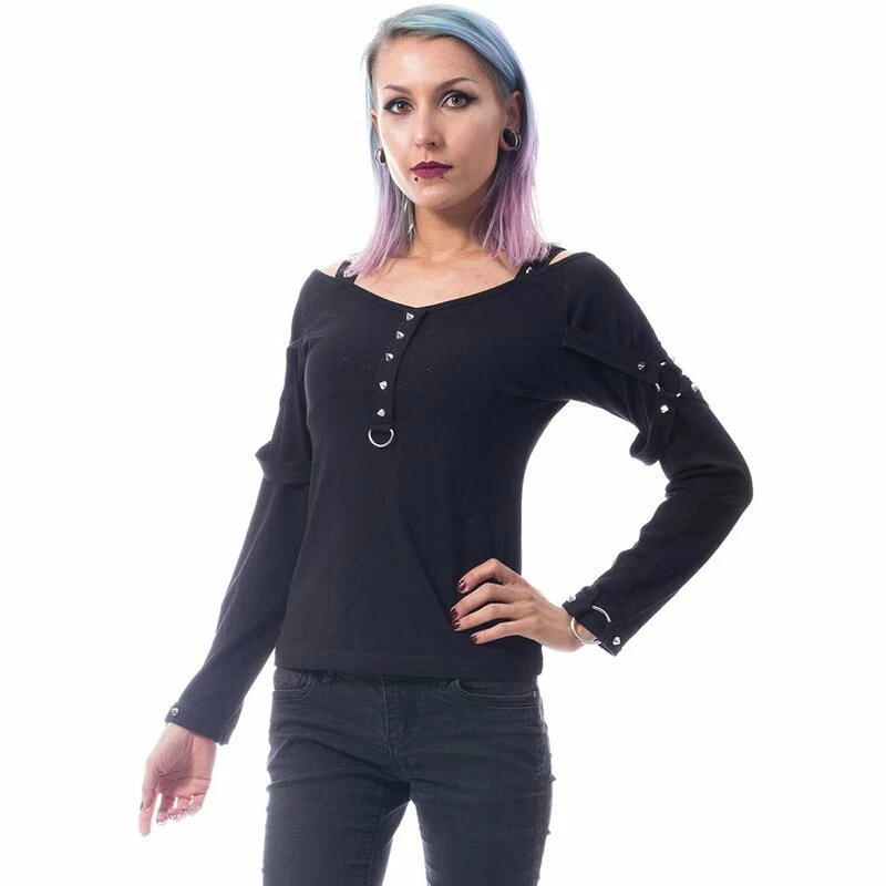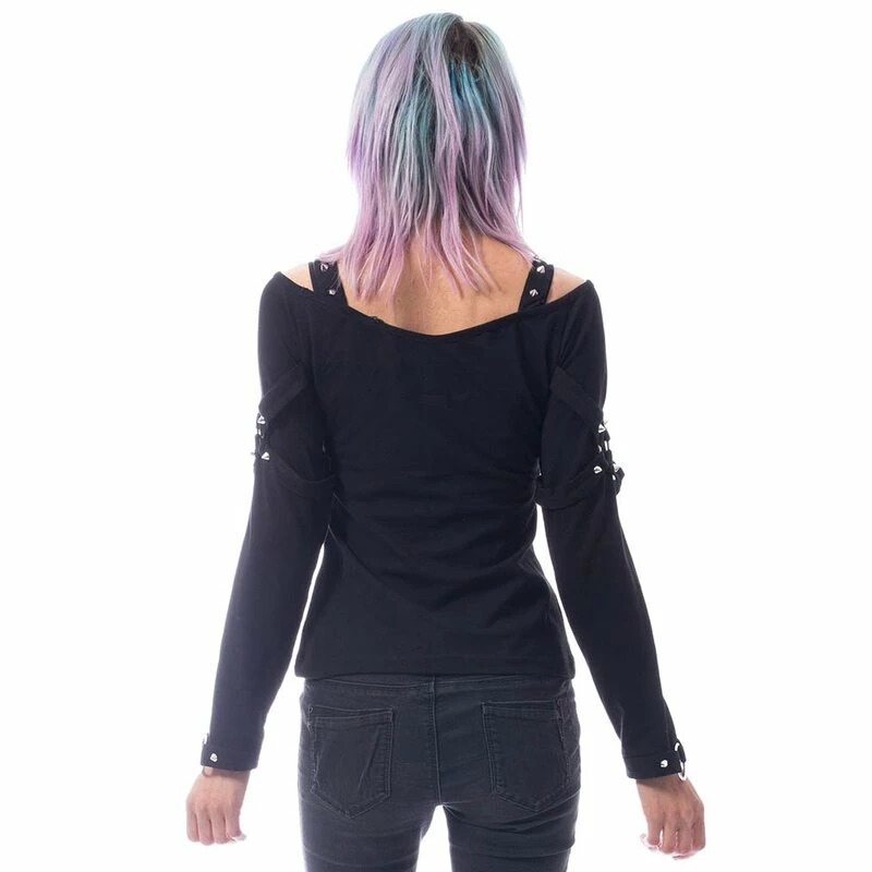 Punkiges Oberteil von Poizen Industries. Das X Clusion Top ist aus weicher Baumwolle und ist am Ausschnitt, Ärmeln und Schulterträgern mit Spikenieten besetzt .