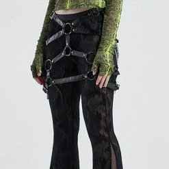 Post-apokalyptische Hüft-Harness von Punk Rave. Die Control Freak Harness ist aus glänzendem Kunstleder, und hat ein weiches Samt Innenfutter, für hohen Tragekomfort. Sie hat abnehmbare Ketten, große Metallringe und kleine Flachnieten. Zur Einstellung hat sie seitlich verstellbare Schnallen.